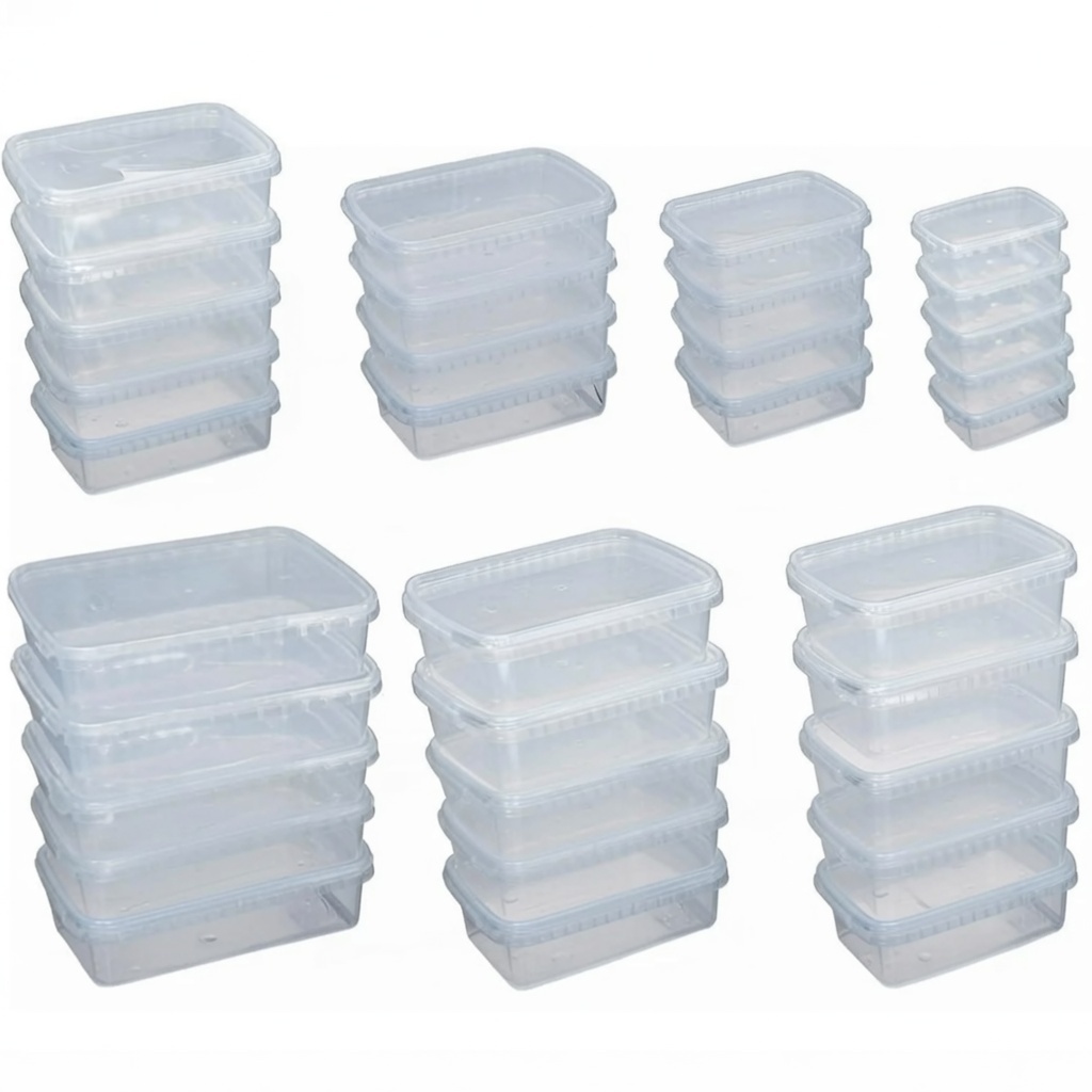 پکیج 35 تکه شامل 5 ظرف از هر یک از سایزهای 240 سی‌سی، 400 سی‌سی، 700 سی‌سی، 1000 سی‌سی، 1200 سی‌سی، 1500 سی‌سی و 2000 سی‌سی است که این تنوع در ظرفیت، می‌تواند پاسخگوی نیازهای گوناگون در آشپزخانه برای بسته بندی مواد غذایی در اندازه و حجم‌های مختلف باشد. این ظروف نظم دهنده از جنس پلی پروپلین ساخته شده و مناسب برای استفاده در فریزر و ماکروویو هستند و نشان مخصوص آن کف ظرف حک شده است. همچنین درب این ظروف کاملا آب بندی شده و از رد و بذل شدن هوا با مواد غذایی جلوگیری کرده و علاوه بر حفظ طراوت و تازگی آن‌ها، از بو گرفتن یخچال و فریزر جلوگیری می‌کند. با استفاده از ظروف نظم دهنده ظاهر فریزر و یخچال خود را مرتب‌تر و زیباتر میکنید و از فضای بیشتری برای قراردادن مواد غذایی می توانید بهره ببرید.